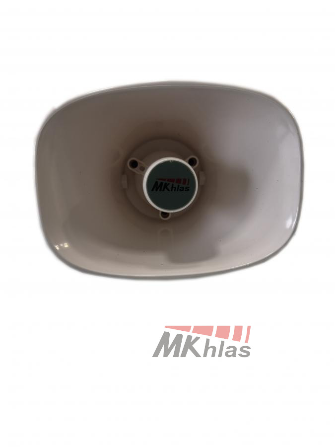 MK 100V 15 je tlakový reproduktor 15 W/100 V, 400 Hz - 5 kHz, 222x162x232 mm, barva bílý papyrus, odolný vůči vlhkosti, plastový, do exteriéru. Dodává se spolu s držákem pro uchycení.
