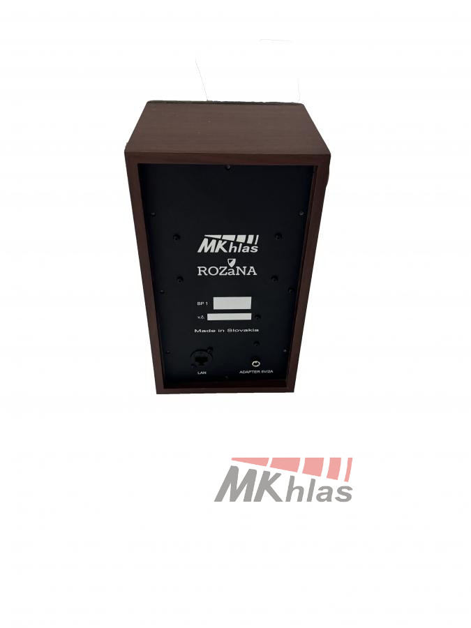 Bezdrátový internetový přijímač s připojením přes LAN síť. Vestavěné tlačítko pro přehrání posledního záznamu (hlášení). Kopatibilní s internetovým vysílačem ROZaNA. Používá se k doplnění rozhlasu, jako bytový přijímač pro imobilní občany, nebo pro ty, kteří chtějí mít vysoký konfort odposlechu hlášení rozhlasu.