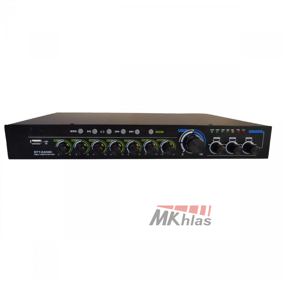 • Výstupní výkon: 240 W, 70 V - 100 V / 4-16 Ohm, výkon lze rozdělit do 3 zónových výstupů, • Napájení: AC 230 V, • Rozměry: 335 x 50 x 240 mm