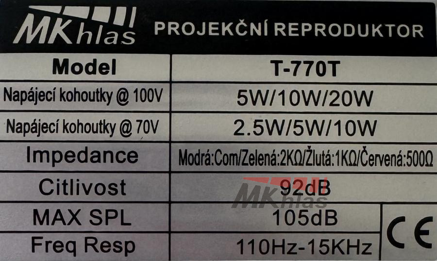 Napájacie výstupy 5 W – 10 W – 20 W pri 100 V,