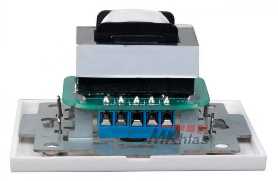 6 polohový stěnový regulátor hlasitosti 100W / 100V. Transformátorový regulátor s nuceným odposlechem. 3 vstupní vodiče a 2 výstupní vodiče na repro. Dá se vložit do běžných montážních rozvodných krabic. (balení neobsahuje montážní krabici).