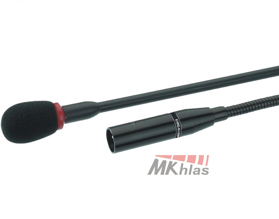 Drátový mikrofon s elektretovou vložkou na husím krku je vhodný na ozvučení mluveného slova. Kardioidní charakteristika. Připojení: XLR, napájení: 9-48V DC current, fantomové (phantom) napájení.