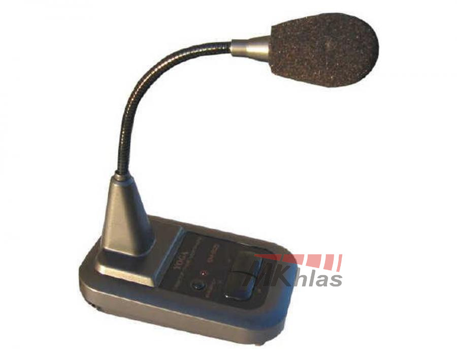 Drátový mikrofon s elektretovou vložkou a zabudovaným gongem je určen pro rozhlasové ústředny. Plastový podstavec, kabel JACK-JACK 6,3 mm o délce 1m, molitanová krytka. Spotřeba: 3mA, napájení: 1,5 V baterie.