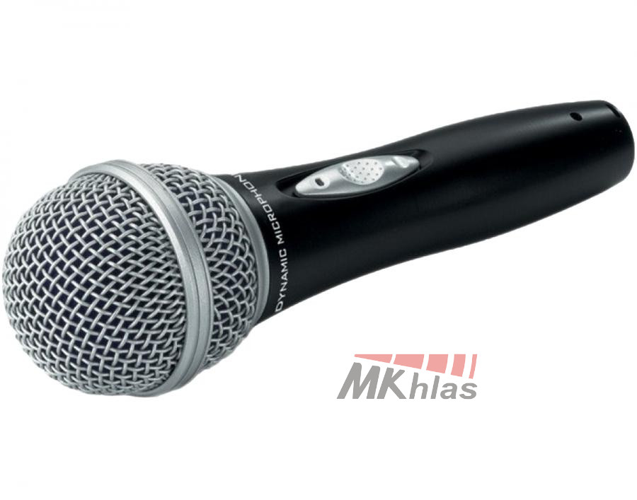Drátový mikrofon s dynamickou vložkou, vhodný pro ozvučení mluveného slova, jevišť, zpěvu nebo konferování, Připojení: mikrofon-XLR. Dodáván s 5m kabelem 6,3 mm, low-noise.