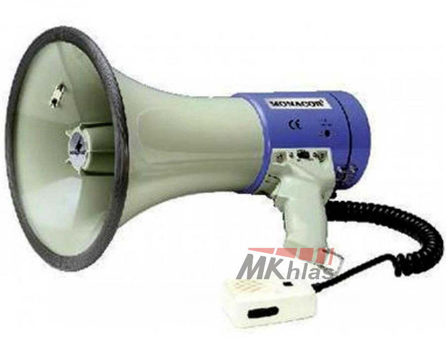 Kvalitní megafon pro každou příležitost. Megafon s mikrofonem do ruky s helix kabelem a zabudovanou sirénou. Napájení: 8 x 1,5V baterie velikosti C, externí 12V DC/2A.