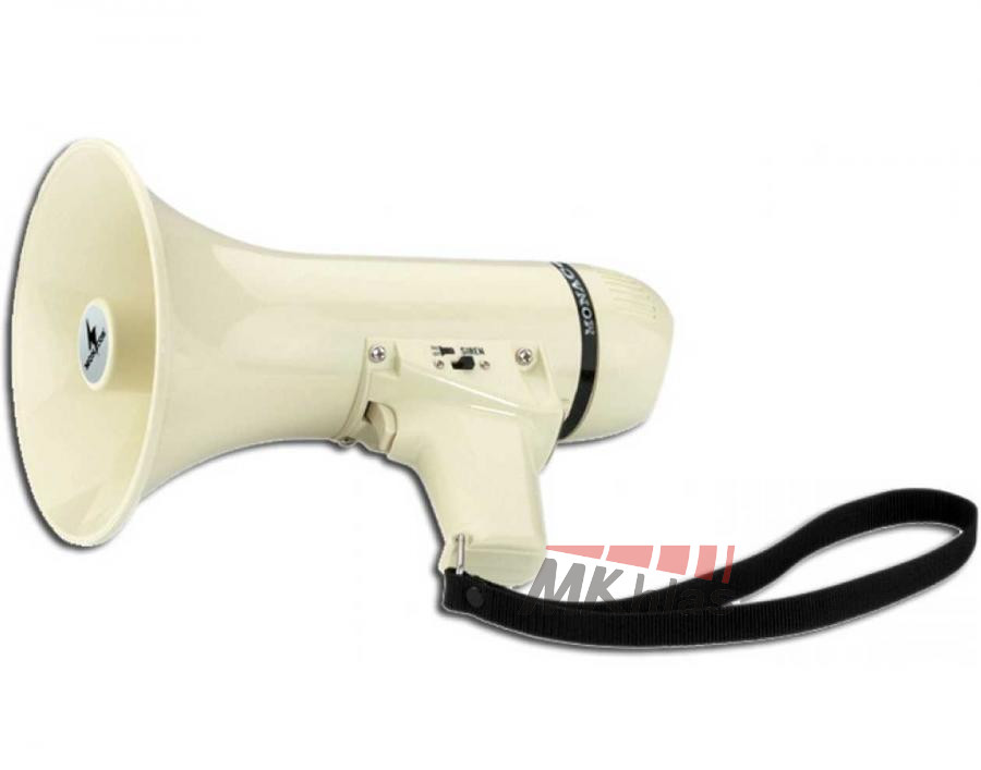 Malý kvalitní megafon pro každou příležitost se zabudovaným mikrofonem a sirénou. Provedení: plastový kryt. Napájení: 6 x 1,5V baterie AA.