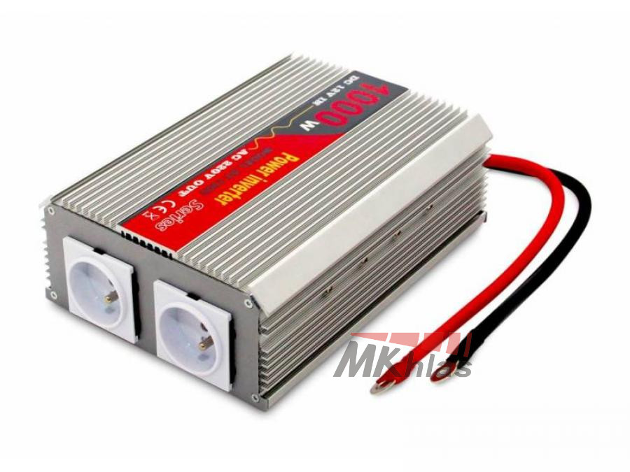 Trvalý výstupní výkon: 1000 W, 30 min. max zátěž: 1200 W, Špičkový výst. výkon: 2000 W, Vstup: DC 10 ~ 15V, Výstup: AC 230V, Tvar výstupní vlny: Modifikovaná sinusovka, Výstupní frekvence: 50 Hz,
