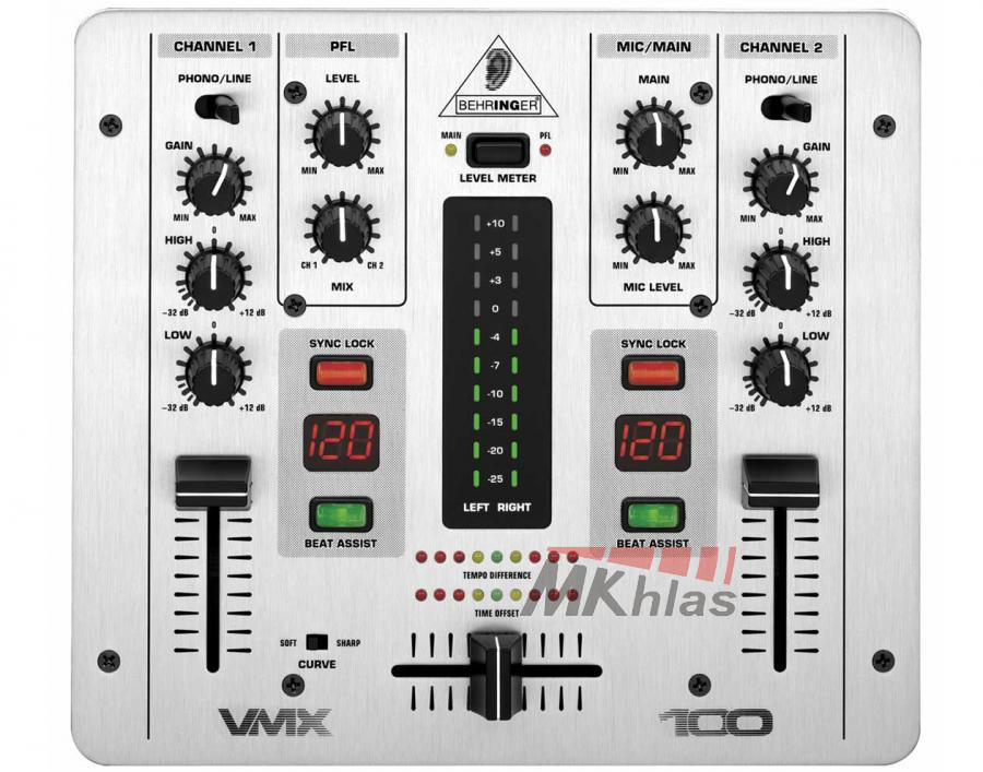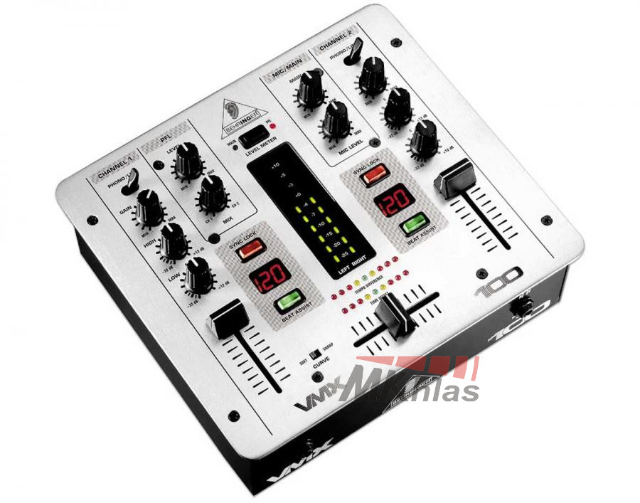 Mixážní pult pro diskotéky s digitálním BMP. 1 MIC a 2 stereo vstupy, měřič tempa, Gain a 2-pásmový kill EQ pro každý vstup, kompaktní konzola s účinnými ovladatelnými počítadly BPM se synchronizovaným zobrazením času a rytmu. Nastavitelný průběh crossfaderu, vestavěný USB port.