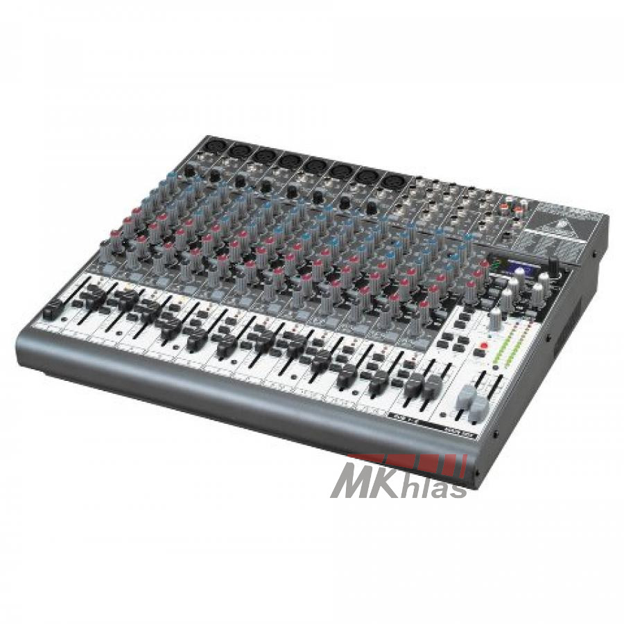Ultra Low Noice mixážní pult. USB interface ve výbavě. 12 kanálů: 8x univ. mono vstupy (XLR / Jack 6,3), 4x stereo vstupy (Jack). Mono vstupy: Gain, LOW CUT filtr, 3-pásmové korekce ± 15dB s parametrickými středy, 3x AUX SEND, Panorama, symetrické a nesymetrické vstupy, možnost fantomového napájení. Stereo vstupy: 4-pásmové korekce ± 15dB, 3x AUX SEND, Balance. Výstupy: MAIN, Phones, Control room, na výstupu je stereo sloupcový LED indikátor úrovně. Oddělená regulace obou výstupních kanálů. Možnost použití režimu SOLO a MUTE a směrování do podskupiny pro všechny vstupy. Pult dále obsahuje 3x stereo AUX RETURN pro zařazení externího efektu a 1x stereo podskupinu. Tahové potenciometry. Vestavěný 24-bitový digitální efektový procesor.