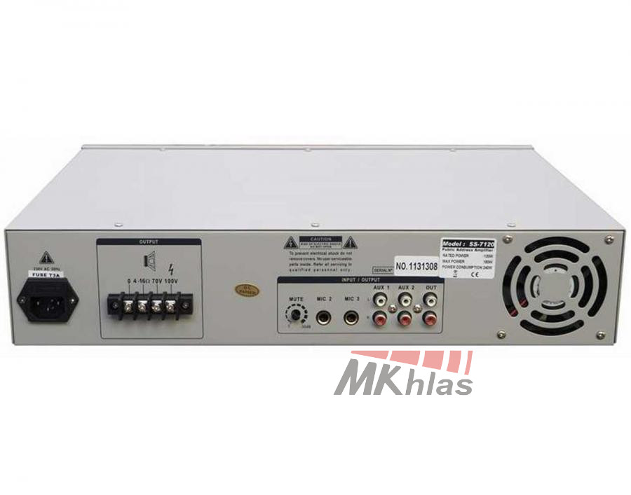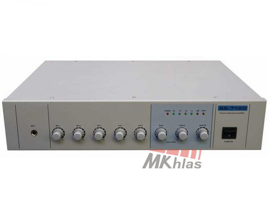 Zesilovač s mixážním pultem pro 70/100V rozvody s možností nízkoimpedančního zapojení. Má samostatně regulovatelné vstupy, 2-pásmové korekce a master volume. Obsahuje ochranu proti zkratu. Vstupy: 3 x MIC, 2 x AUX, hlavní hlasitost MASTER, 2-pásmové korekce, LED indikace výstupní úrovně, probuzení, 1x linkový výstup. Výstupy: 70V/100V/4-16 Ohm.