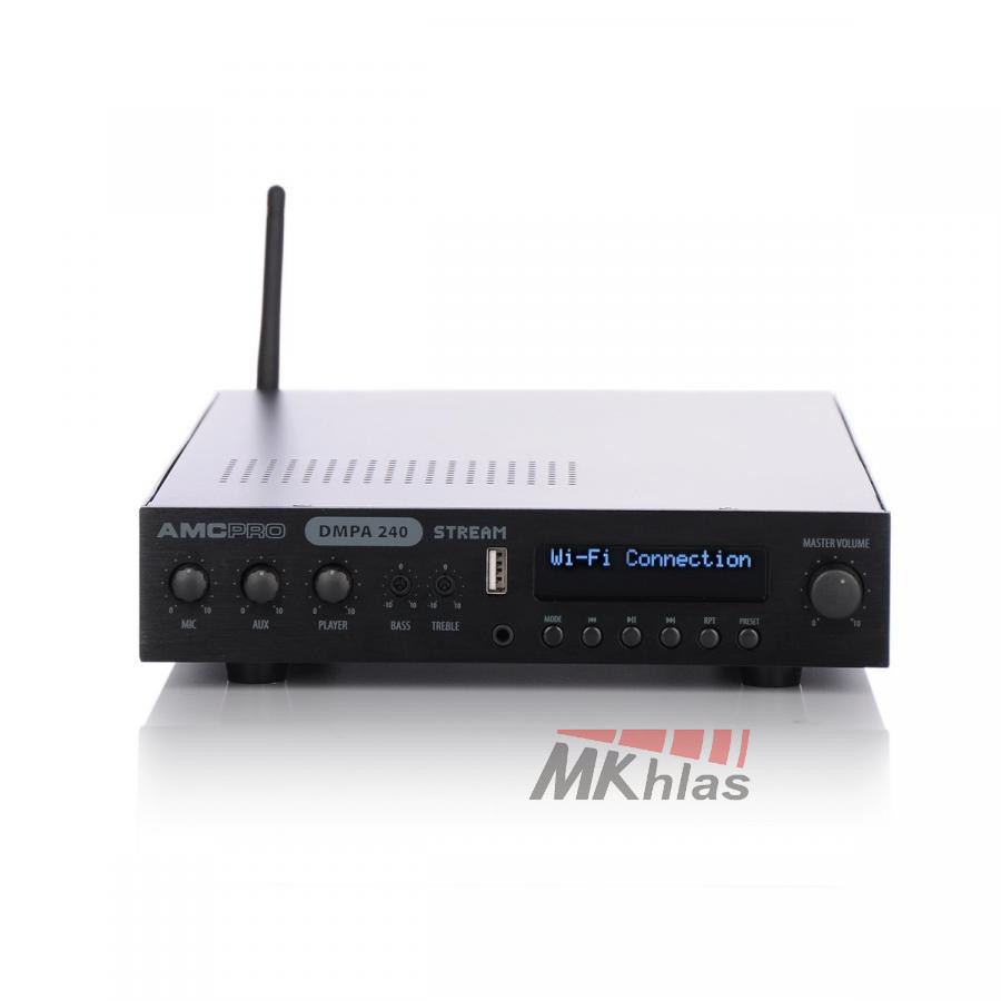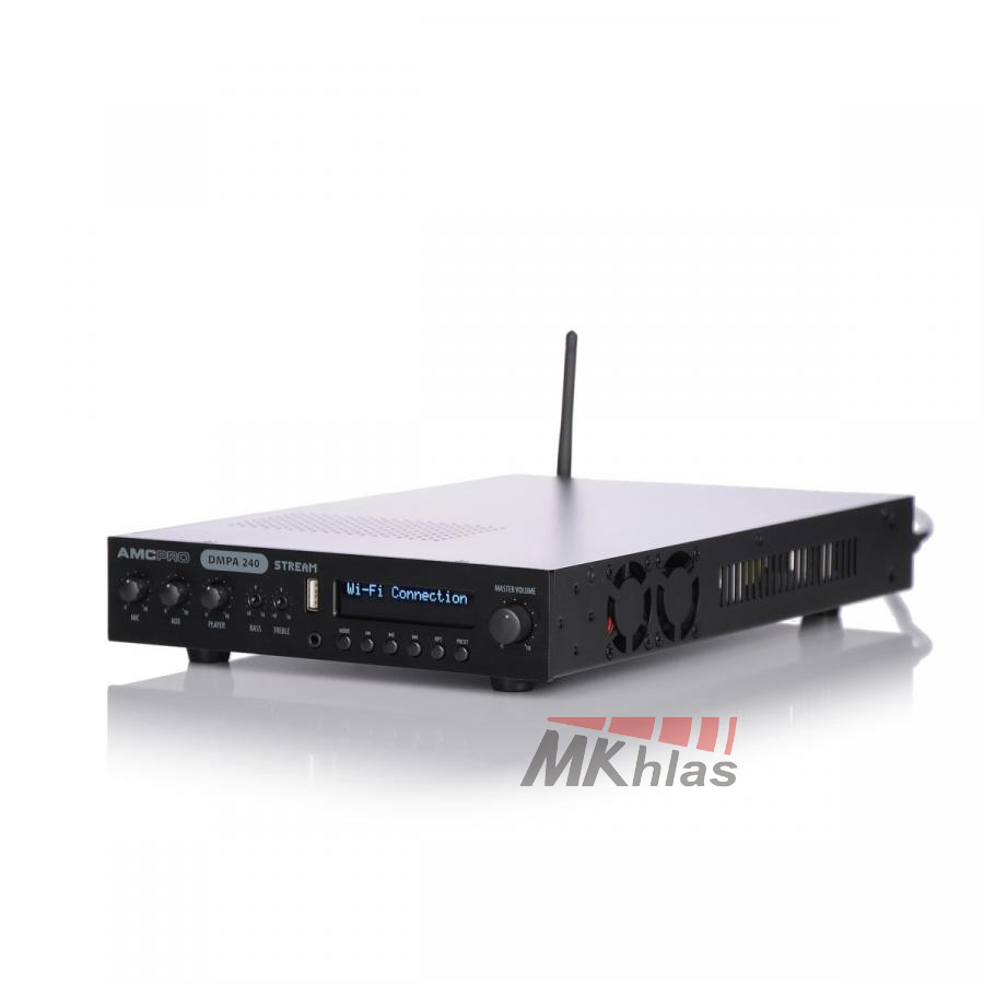 DMPA STREAM je kompaktní 1U poloviční rackový směšovací zesilovač pro různé středně velké ozvučení se spínaným zdrojem a 100 V výstupním transformátorem. Obsahuje vestavěný přehrávač médií navržený pro streamování internetových rádií a hudby z oblíbených služeb, jako jsou Spotify, Tidal a další. Hudební přehrávač lze ovládat pomocí aplikace 4STREAM nebo ovládacích prvků na předním panelu a podporuje připojení Ethernet i Wi-Fi.