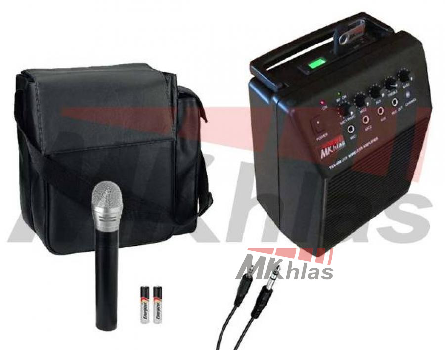 Bezdrátový zesilovač se zabudovaným USB přehrávačem, vstupem i pro SD karty a tunerem. Ekvalizér: Bass ± 4dB/200Hz, Treble ± 5dB/10kHz. Napájení zesilovače: 230V/50Hz/40VA, 12-15V DC current/1A, 8x1,5V baterie velikosti D. Napájení mikrofonu: 9V baterie. Vstupy: Mic 1 x 6,3 mm jack, Aux 1 x 6,3 mm jack. Výstup: Record 1 x 6,3 mm jack. Nosná frekvence: 863.05-864.95MHz. Doplňky: Propojovací kabel, baterie.