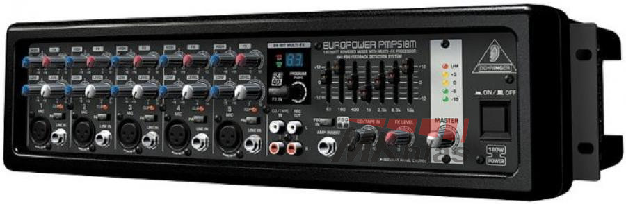EUROPOWER ® Kompaktní 5-kanálový mixážní pult - 1x180W/4 Ohm. 24-bit digitální efektový FX procesor, detektor zpětné vazby (FBQ Feedback Detection System), 7-pásmový grafický ekvalizér, 1 monitorovací sběrnice. Všechny vstupy mají korekce výšky, basy.