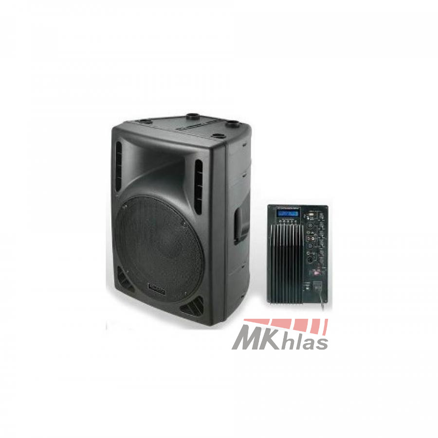 Dvoupásmová reproduktorová soustava, plastový reprobox, s MP3 přehrávačem je osazen je 12" basovým a 1" titanovým výškovým reproduktorem. Přední strana reproboxu je chráněna kovovým sítem. Vstupy: 1x mikrofon JACK6, 3/XLR, 1x linkový vstup, 2 x CINCH/XLR, všechny vstupy mají nastavitelnou úroveň hlasitosti. Výstup: 1x linkový XLR. Regulace celkové hlasitosti, společné korekce basy a výšky (+ / - 12dB), indikace CLIP a POWER, napájení: AC 230V/50Hz. LCD displej pro ovládání MP3 přehrávače.