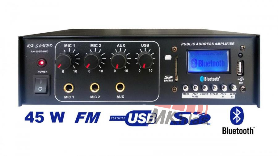 Moderní rozhlasová ústředna pro všestranné ozvučení se zabudovaným přehrávačem MP3 z USB/SD karty, přes Bluetooth, s FM tunerem a dálkovým ovladačem. Ústředna je vhodná k ozvučení školního rozhlasu a vyzvánění, ozvučení restaurací a domů smutku.