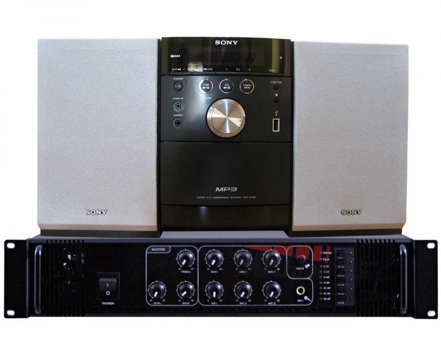 Velmi spolehlivá ústředna s výstupním napětím 100V. Jsou určeny pro plošné ozvučení obcí, škol, výrobních hal, stadionů. Jejich důležitou vlastností kromě spolehlivosti a příznivé ceny je práce se zdroji signálu: rádiem (TUNER), CD-přehrávačem (CD Player s MP3) a magnetofonem (MC) a nově i s USB. Vstupy: 1x MIC, 1x AUX.