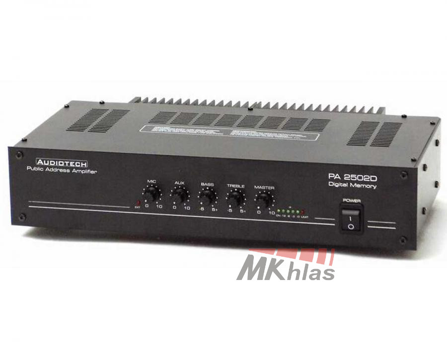 Speciální monozesilovač pro 100V rozvody s mixpultem se dvěma vstupy MIC a AUX, s automatickým vyhlašováním zpráv v případě napojení na EPS (modul digitálního záznamu - 2x60 sek.). Obsahuje 2-pásmové korekce. Je určen pro ozvučení škol, administrativních budov, průmyslových objektů a pod. Vstupy: 1 x MIC, 1 x AUX.