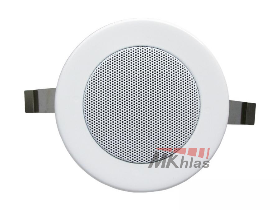 Stropní reproduktor s regulací výkonu 6/3/1,5 W pro 100V linkové rozvody. Je určen pro ozvučení interiérů. Provedení: bílá barva, plastová mřížka. Samozatahovací plastové příchytky na upevnění.