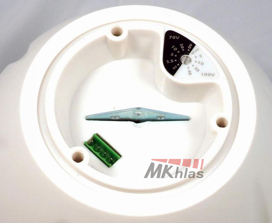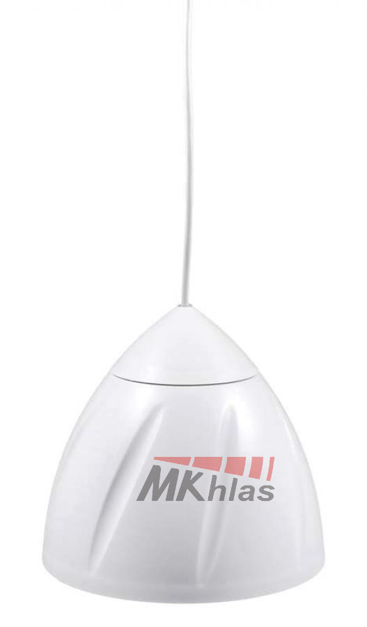 Stropní závěsná reprosoustava pro 100V rozvody s možností nízkoimpedanční (8ohm pozice Loz) zapojení v bílé barvě, s brilantním zvukem. Ozvučnice z ABS plastu obsahuje 6,5 "basový a 1" výškový reproduktor. V horizontálním směru má kruhovou vyzařovací charakteristiku. Je vhodný do náročných, akusticky otevřených prostorů, jako jsou obchodní domy, komplex prodejních prostor, výrobní haly apod. Délka dodávaného kabelu je 2m.