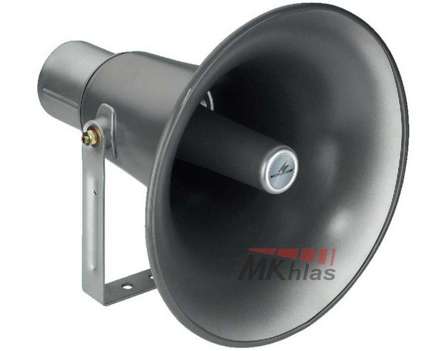 Tlakový reproduktor v 100V provedení odolný vůči vlhkosti. Je vhodný pro použití do venkovního prostředí, např. v průmyslu, workshopech. Nastavitelný výkon: 50/25/15/5W. Materiál: hliník.