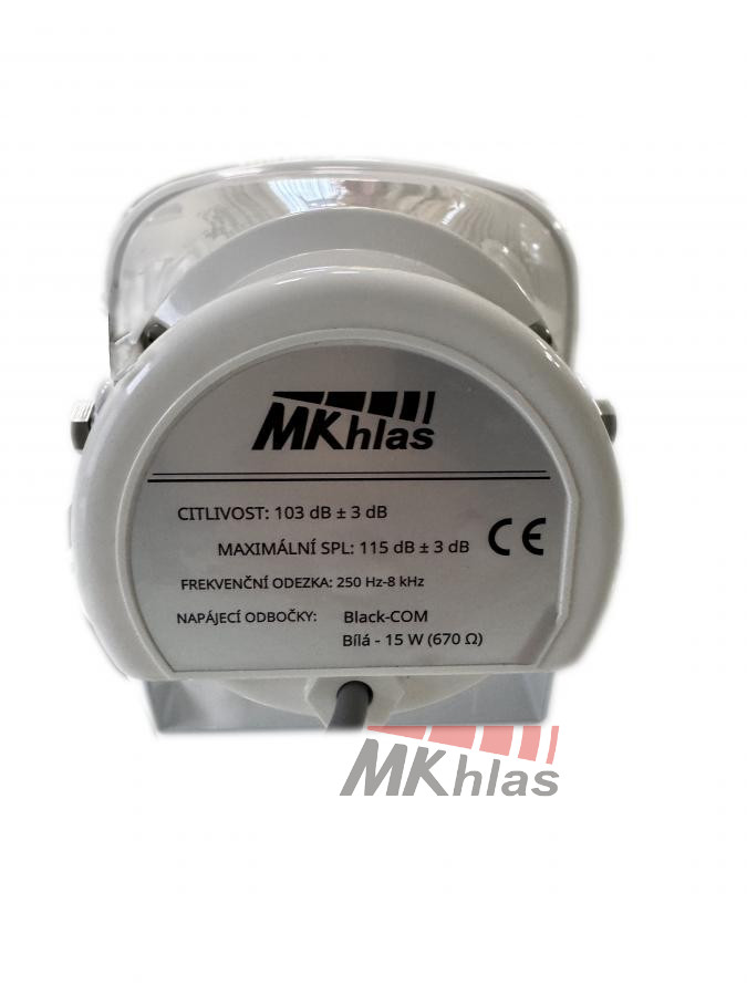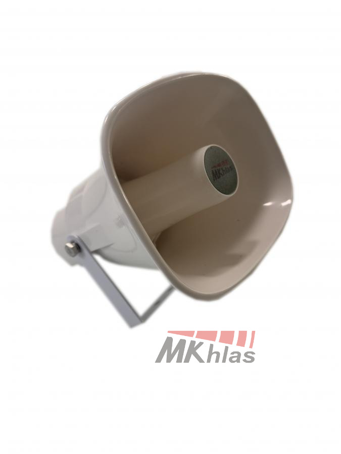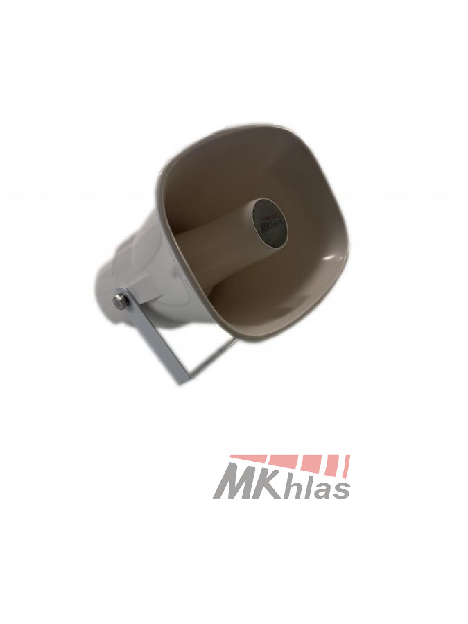 MK 100V 15 je tlakový reproduktor 15 W/100 V, 400 Hz - 5 kHz, 222x162x232 mm, barva bílý papyrus, odolný vůči vlhkosti, plastový, do exteriéru. Dodává se spolu s držákem pro uchycení.